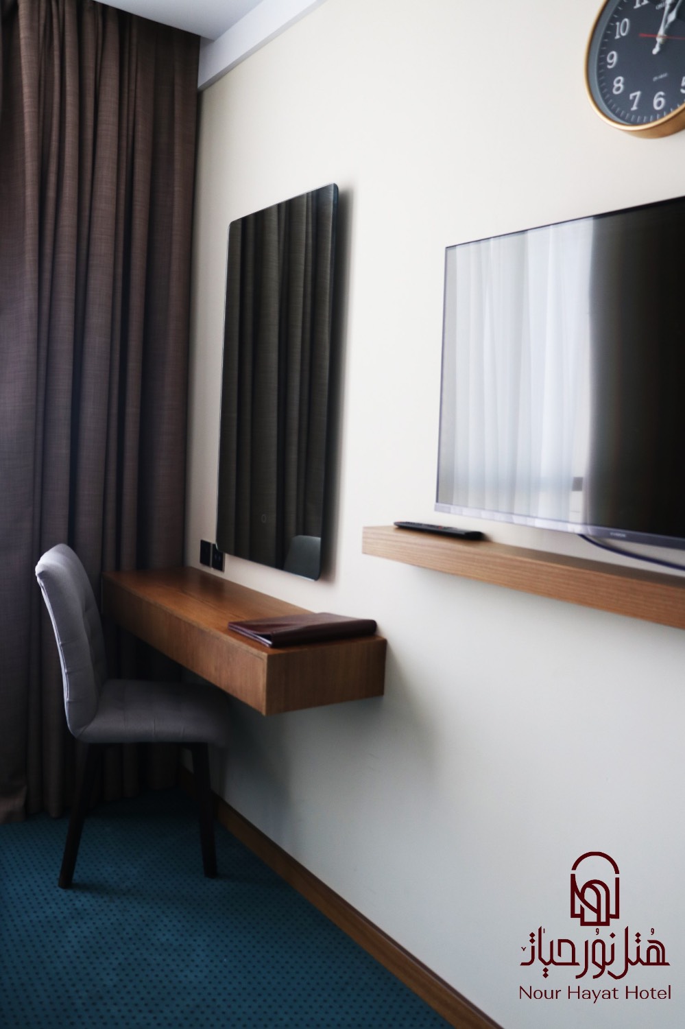 اتاقهای هتل نور حیات با طراحی ساده اما شیک، مناسب برای اقامت یکنفره، دونفره و خانوادگی هستند. هر اتاق مجهز به امکاناتی نظیر: